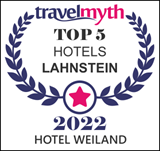 Mitten im Herzen von Lahnstein, wo unzählige historische Gebäude, Schlösser und Burgen zum Entdecken und Staunen einladen, dort wo die Vielfalt der Natur inmitten des „UNESCO-Welterbe" Oberes Mittelrhein-Tal Sie verzaubert, finden Sie HOTEL WEILAND. Unser familien-geführtes Hotel liegt verkehrsgünstig im Zentrum von (Ober-) Lahnstein, in unmittelbarer Nähe zur Fußgängerzone, den Rheinanlagen und der Stadthalle. Der Bahnhof und die Bushaltestellen sind bequem zu Fuß zu erreichen. Dieser traditionsreiche Hotelbetrieb wird seit 1851 von der Familie Weiland geführt und lädt Sie herzlich zum Verweilen und Entspannen ein. Wir bieten Ihnen spezielle Arrangements für Wanderer, Radfahrer, Kultur Reisende, Reisegruppen usw. Für unsere Businessgäste sind Konferenzräume mit Tagungsequipment für Meetings, Präsentationen und Versammlungen vorhanden. Sollten Sie im Urlaub etwas für Ihr Wohlbefinden und Ihre Gesundheit tun wollen, so empfiehlt sich eine Behandlung in unserer Naturheilpraxis. Besichtigen Sie auch die zahlreichen Sehenswürdigkeiten im Weltkulturerbe Oberes Mittelrhein-Tal ob zu Fuß, mit dem Rad, Auto oder den öffentlichen Verkehrsmitteln. HOTEL WEILAND ist der ideale Ausgangspunkt für Ihre Ausflüge.